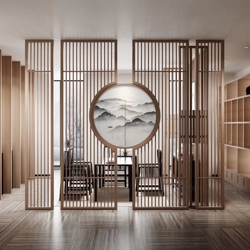 镂空+多层实木板屏风